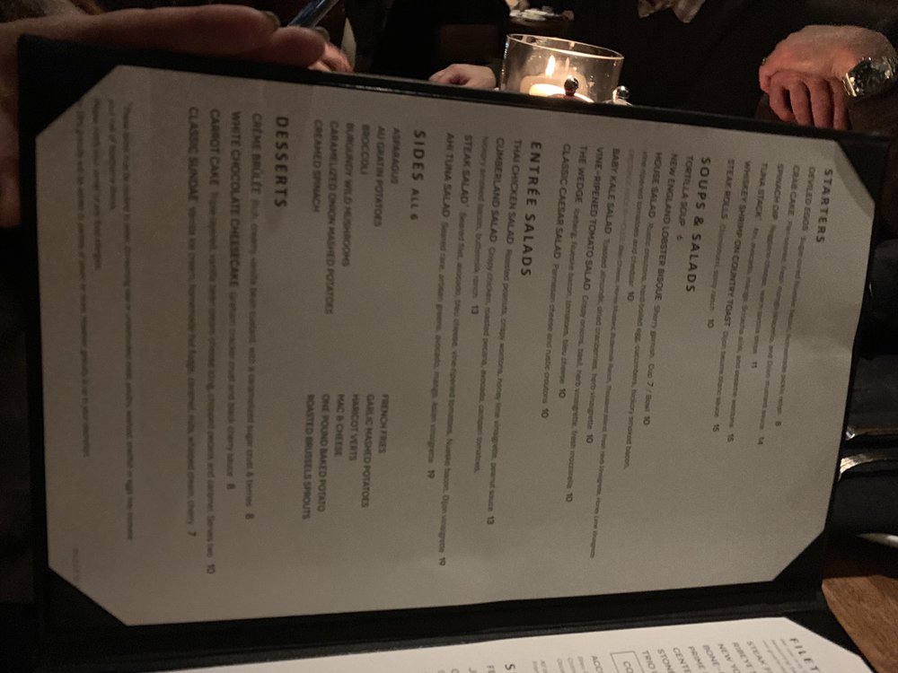 For a heartier meal, you can't go wrong with their expertly cooked steaks, such as the 14 oz Ribeye or the unique Steak Rolls. Pair your meal with a refreshing Wedge Salad or the rich New England Lobster Bisque.